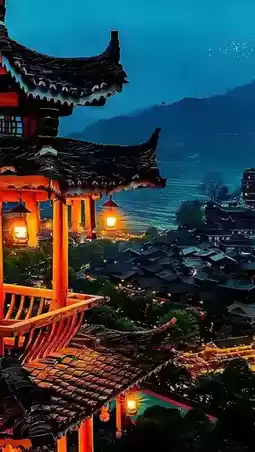 Stilted buildings built along the mountain, thousands of lights illuminating the starry river✨