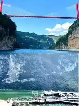 Highlight 1: Dongfeng Lake - The Masterstroke of Wujiangyuan Gallery, with enchanting scenery and beautiful landscapes, integrating high gorges, flat lakes, karst caves, and flying waterfalls. It has long been praised as "mountains like the Three Gorges but water better than the Three Gorges, water like the Li River but mountains better than the Li River." The winding 11 bends embody the beauty of grandeur, vividness, and elegance.