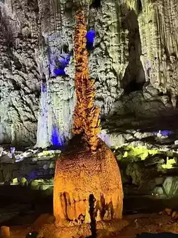 Known as the 'King of Karst Caves,' this 17-kilometer underground marvel features breathtaking sights like the Overlord Helmet and Silver Rain Tree, resembling an alien world! Under the lighting, the karst formations look like giant artistic sculptures.
