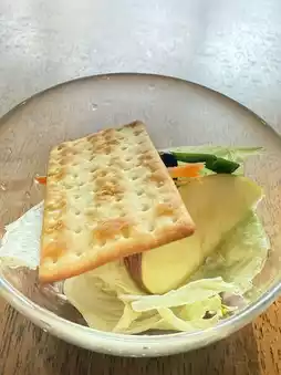 Fresh and Crisp Vegetable Salad: Includes lettuce, alfalfa sprouts, cucumber slices, shredded carrots, apples, and even pineapple and pickled radish slices, drizzled with the restaurant's special Japanese-style dressing. It's refreshing and appetizing.