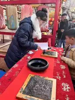 For example, ring tossing, printing New Year pictures, writing the word "Fu"... all of them are very participatory.