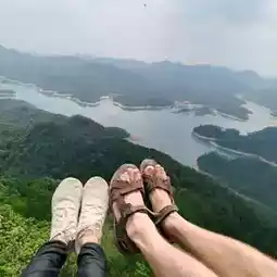 Shitou Shan of 305m height, locates at the north of Wuguishan(五桂山), Zhongshan City. It's very close to Zhongshan downtown, easily reach. It's not difficult to hike at all, begins with around 200 m paved stairs, then will get into the dirt path, which is very clear and lovely. After about 1 hour walk, we will arrive the mountai top to enjoy the best and beautiful view of Changjiang Resevoir. Many locals hike there at weekends.