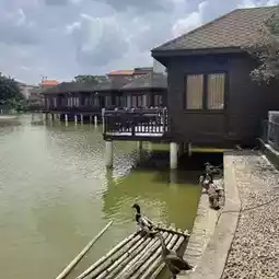 It is a restaurant🍴 there is a lake next to the sauce👍🏻 You can go for a walk while you are eating