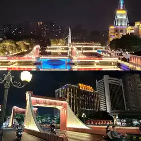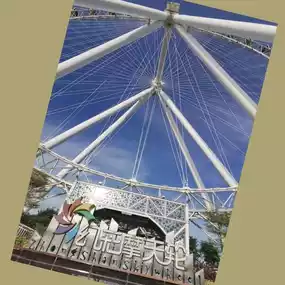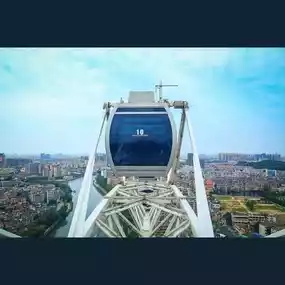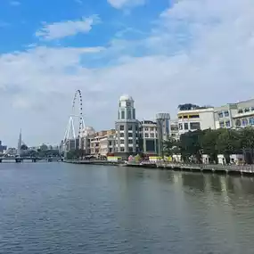 The Xingzhong Square Fantasy Ferris Wheel is a new love landmark in Zhongshan, where you can give her/him a surprise. You can have a bird's eye view of the beautiful scenery on both sides of the Qijiang River in Zhongshan from high in the sky. The city has different views during the day and at night, and you can take in all the scenery.