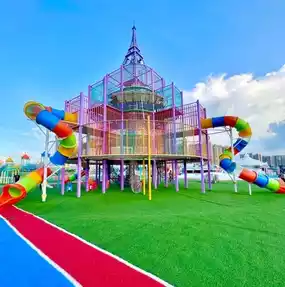 Today, I brought my son and daughter to Zhongshan Game World Amusement Park. It is a colorful playground full of laughter and joy. When we entered the park, the first thing that caught our eyes was the colorful amusement facilities, and the children's eyes lit up instantly.