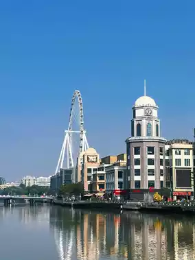A pink bridge, where you can take photos of the Ferris wheel and old buildings, is a popular photo spot.