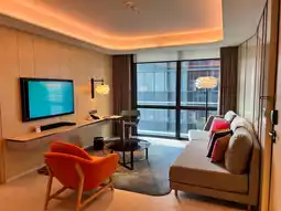 🔘Separate shower and toilet + smart toilet + small refrigerator, perfect for detail-oriented guests