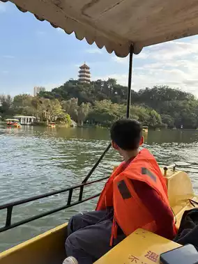 Longshan Park is one of the most famous attractions in Xiaolan. The park has free admission, so everyone can go hiking and enjoy the beautiful scenery. Additionally, boating 🚣♀️ is very affordable, costing only 15 RMB for two people for thirty minutes, and 25 RMB for four people, which is a great deal compared to other attractions!