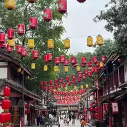 Cross the cobblestone road to the Japanese scenic area 🏮, where wooden houses, torii gates, and cherry trees create an oriental atmosphere. Rent a kimono and stroll along the wooden bridge, or take pictures in front of the teahouse. The bamboo curtains and lanterns are so detailed that you’ll feel like you’re in Kyoto.