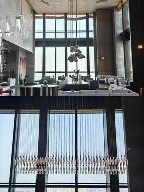 The hotel uses numerous lighting elements to echo the local culture. The 39th floor sky lobby creates a unique wabi-sabi aesthetic through hanging lamps and ground light reflections, complemented by the natural light from the windows. The spiral staircase next to the lobby bar is stylish and grand, outlining the artistic tension of the space with warm touches.