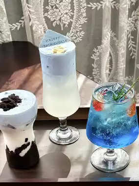 Must-Order: Neptune Pond Ice Blue Sparkling Water. Lychee pulp bobs in the waves with butterfly pea flowers, and mint leaves resemble floating seaweed. Reddish Orange Light: It's like the setting sun falling into the sea. Grapefruit pulp bursts in orange juice, creating a beautiful gradient effect. Lemon Lychee Cake. Cloud-like cream wraps around large lychees, and the lemon jelly is incredibly refreshing.