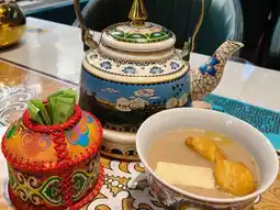 Since returning to Zhongshan after the pandemic, I haven't been to Fengyuan Commercial Street. Today, driving past the restaurant where I used to frequent for fried ice cream, I discovered it's now a Mongolian restaurant, "Xilin River Mongolian Cuisine." Such a rare find, I decided to try their signature "Mongolian Milk Tea." Made with brick tea, fresh milk, salt, and butter, it boasts a rich, salty flavor. Paired with fried rice, it's a delicious treat that warms the stomach and refreshes the mind.