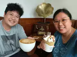 Directly across the street is a coffee shop ☕️ called "FITMA COFFEE," brimming with retro Nanyang charm. Try their innovative ice cream coffee 🍨: freshly brewed espresso poured over a milk ice block and served in a crispy cone, creating a triple-flavored experience. The warm croissant 🥐 is exceptionally crispy, its honeycomb interior brimming with a rich, creamy aroma.
