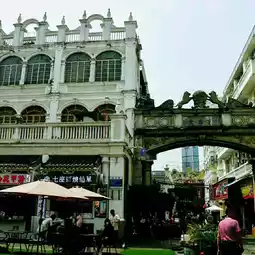 Sunwen Xilu, 孙文西路, is a short but pleasant pedestrian street in Zhongshan, Guangdong. It is similar to other late Qing-Republic of China towns or streets such as Daliang in Shunde. There are plenty of qilou and other period buildings, and they've been quite well preserved (the façades, anyhow). It probably looks broadly the same as when Sun Yat-sen himself walked along this street a century ago.