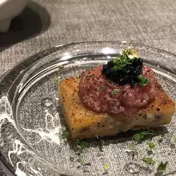 Wagyu beef tartare with potato lasagna