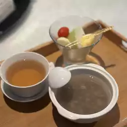 After the treatment, I was served tea, a sweet red bean soup dessert, and fruit in a separate room.