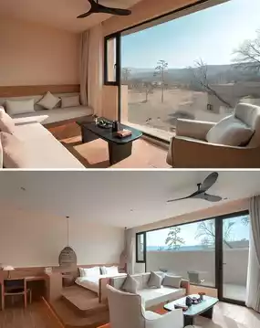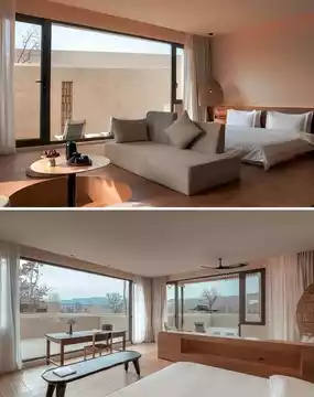 In these isolated mountain secrets, a series of display frames are built for the world to see, slowly filling them with fantastic ideas and surging with all the images of a beautiful life. In recent years, Ningxia Zhongwei has entered everyone's field of vision and instantly became popular due to the location of Huanghe Suji. Yuanbai and Feilianji are of the same origin, integrating art and natural lifestyle into the countryside and blending the symbolic elements of local history and culture. The space design tends to be natural and warm, with the main color extracted from the local unique red sandstone, wheelbarrows, cowhide lamps, pottery jars and earthenware jars, etc.