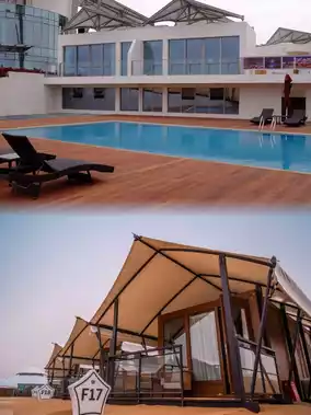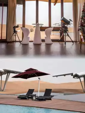 The hotel's swimming pool design is great, with a translucent infinity pool and a desert landscape visible in the distance. Although the swimming pool is not big, it is well designed. It is best to go swimming early in the morning so that you can book the entire pool, which is great for taking photos and checking in. A big feature of the Star Hotel is watching the sunset and the starry sky. Because there is less light pollution here, this is the most beautiful moment in the desert.