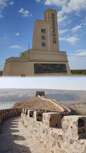 It's not difficult to climb up, taking about ten minutes. The bricks of the wall are colored, which is a bit unique. Actually, the Yellow River scenery next to the Ming Great Wall is more worth seeing.