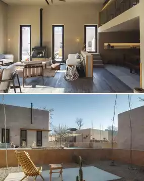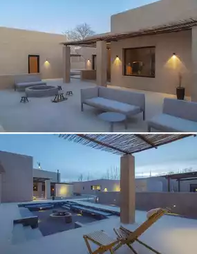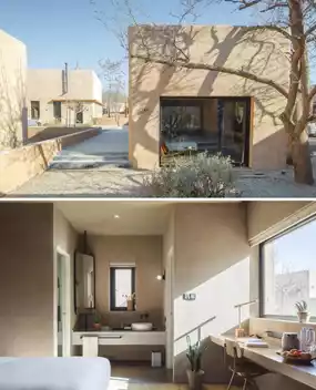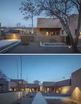 The architecture follows the local style, with bungalows, terraces, courtyards, and reed eaves, extending indoor activities to the outdoors. The exterior walls are made with a special cement mortar plastering process, restoring the architectural texture of rammed earth walls, creating a "old" look that seems closed but will not collapse after long exposure to wind, rain, and sunlight.