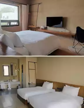 There are 15 guest rooms, with views of the Yellow River, orchards, reed marshes, and the newly built beacon tower on the ruins of the Great Wall, presenting the vast Northwest. Enjoy a leisurely afternoon with a cup of coffee at "Ye You Ka," or find local specialties at "Ye You Ji." At night, meet friends on the terrace, drink and chat, or play guitar and hum a tune, and enjoy a romantic time under the stars.