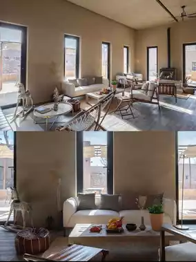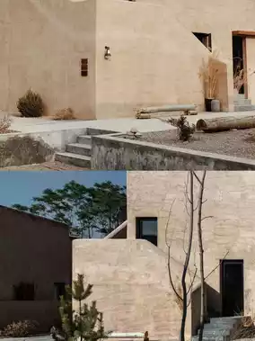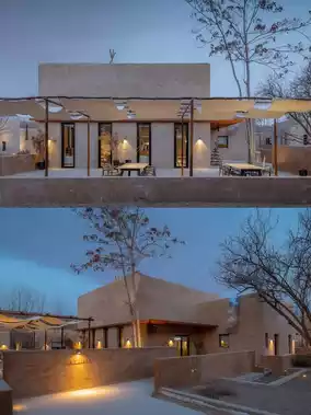 🌿The rooms are scattered in this open yet enclosed courtyard space, full of a sense of fusion between modern and traditional collisions. The combination of logs and loess walls makes people feel warm and peaceful.