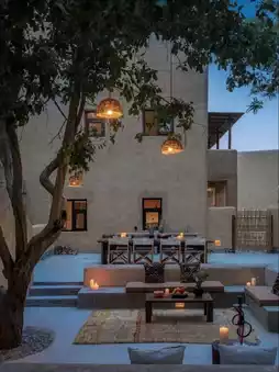 Like a diamond necklace decorating the vast desert. Rooms have panoramic floor-to-ceiling windows, so you can watch the desert sunrise and sunset from bed, and gaze at the brilliant starry sky at night.