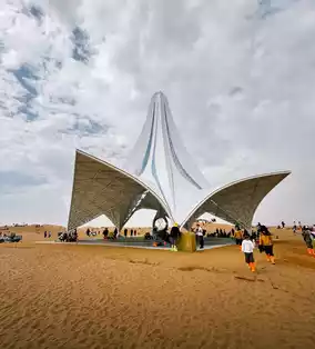 Ride a camel🐫 → Desert dune buggy🚙 → Shuttle bus → Viewing platform → Flying Horse Roller Coaster🎢 → Sand sliding🛷 → Cable car → Sheepskin raft🛶 → Glass bridge🌉 → Speedboat🚤
