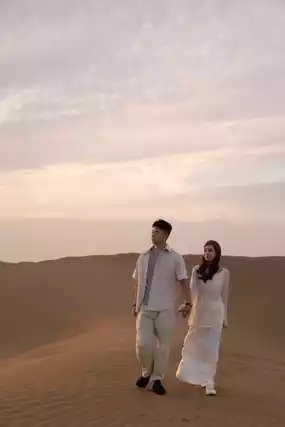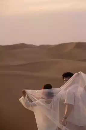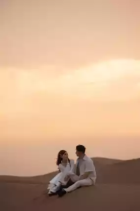 When the desert sand grains are gilded by the sunset, every glance and every hand-hold of this couple becomes the most touching poem in the vast desert.
