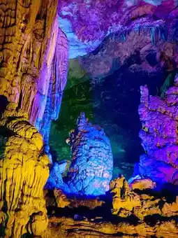 🏝Huangxian Cave not only has unique natural landscapes but also rich cultural history, with many Buddhist and Taoist monks gathering here, leaving behind numerous cliff paintings and stone inscriptions. The cave has many attractions, including the Majestic Wind at the Cave Entrance, Ji Gong Looking Up, Qu Yuan Walking and Chanting, and Butterflies Playing with Pandas. The most famous ones are the Vicissitudes of Life and the Ladder to Niangniang Village. The "Cloud Basin" landscape in the cave covers an area of more than 20,000 square meters and is known as a wonder of Chinese karst caves.