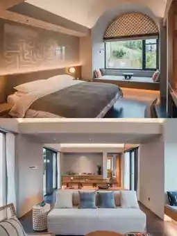 The architectural style of the resort is uniquely charming, as if it grew out of the earth. The design of the cave dwellings retains traditional features while incorporating modern innovative elements, making them ventilated, breathable, and comfortable. Entering the courtyard, the interior decoration of the homestay is simple and elegant, with warm lighting creating a cozy home-like atmosphere. Inside the rooms, arched windows and large glass areas allow ample sunlight to pour in, and the tatami mats, wooden tables, and chairs by the windows are tastefully arranged. Various high-end household items reflect a pursuit of quality in the details.