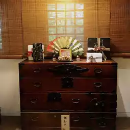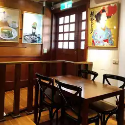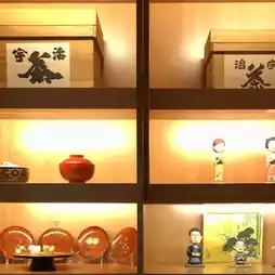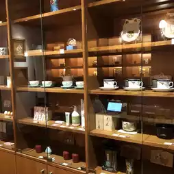 The decoration in the store is in a very classical Japanese style, with a wood-themed design. There are many tea sets and Japanese ornaments placed around, giving it a Kyoto feel.