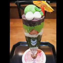 The ice cream is made with rich matcha from Kyoto's "Uji Marukyu Koyamamaru", paired with Mandan red beans and handmade white jade balls made with Japanese white jade powder. It tastes chewy and does not stick to your teeth. The bottom layer is topped with matcha agar, which is very rich but not sweet, and is served in a special bamboo tube container. Classic Kyoto-style desserts, it makes you feel like you are in Kyoto🏮