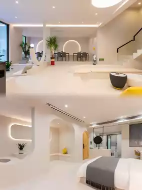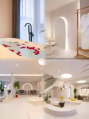 This mountain view swimming pool B&B located opposite the Guanyin Dharma Realm scenic area in Zhujiajian covers an area of more than 600 square meters, with a total of 8 rooms and a parent-child room, which can accommodate 4 people