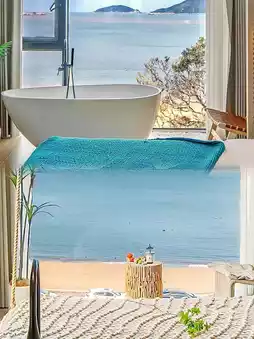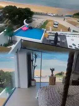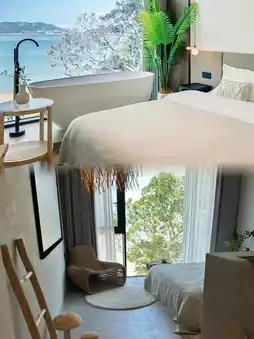 The white single-family villa is very dazzling! Dazzling! I really like it! It's very close to the sea, and the room has a 180° floor-to-ceiling window. You can see the sea when you open the curtains ~ super romantic!