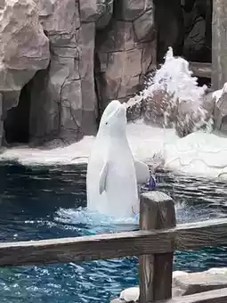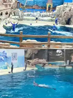 - Recommended shows: The Love Between Human and Whale and the Dolphin Joy Show. The belugas are super cute and endearing, sweetly interacting with the performers; the dolphin show starts with fun interactions, and answering questions on the big screen teaches marine knowledge and the importance of protecting the marine environment. The camera will randomly cut to the audience, so you can take the opportunity to check in.