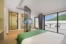 Some rooms have a balcony with tables and chairs, offering a 90-degree sea view🌅