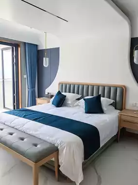 The room is simple yet cozy. The decoration style incorporates island elements, mainly in blue and white tones, making you feel like you are in the blue sky, white clouds, and the sea. The bedding is soft and comfortable, allowing you to sleep soundly after a day of play. You can enjoy the distant sea view from the balcony, watch the sunrise in the morning, and enjoy the sunset in the evening. It's simply beautiful!