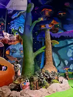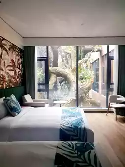 The hotel rooms were fascinating, with rainforest rooms, treehouse rooms, and cartoon rooms. We stayed in the rainforest animal room, which was amazing! The room was spacious and bright, with exquisite decor. The large floor-to-ceiling windows offered a direct view of the rainforest outside. During the day, we could see ring-tailed lemurs and peacocks, and at night, we fell asleep with the gentle lights and rainforest creatures. It was unforgettable.