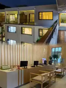 The four-story building combines Japanese-style wood with new Chinese elements to create a Zen-inspired courtyard space. The corridors are decorated with potted flowers, creating a beautiful view at every step. It feels like being in a tranquil Zen garden, with every corner exuding a peaceful and harmonious atmosphere that instantly soothes the soul.
