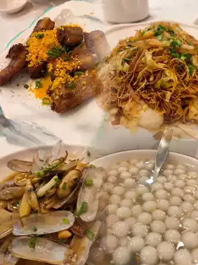 The hotel's Chinese restaurant offers the classic dishes of a long-established restaurant. My friend said that she has dinner here every year and always orders fried rice noodles, and the taste is consistently delicious. We recommend the garlic-flavored ribs, crispy, salty, and fragrant; and the sweet fermented glutinous rice balls with osmanthus, fragrant, glutinous, and delicious.