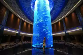 The hotel lobby features a cylindrical coral fish tank, known as the "Pillar of the East China Sea." Divers clean it daily! There are also regular pelican shows! Children can take photos with the pelicans.