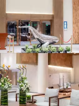 🏨 The hotel has a very distinctive design, continuing the design concept of the Maritime Silk Road, and the overall style is very stylish. Walking into the lobby, the view suddenly opens up, and the sea view comes into view, instantly giving you a vacation feeling.