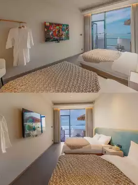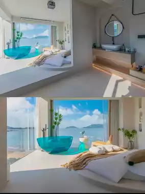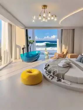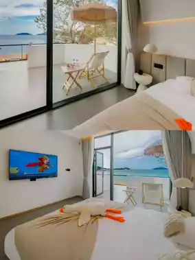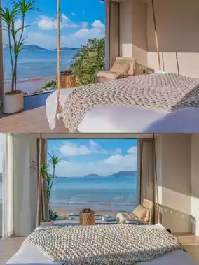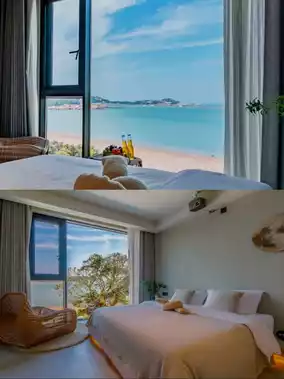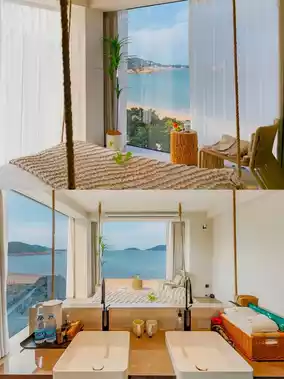 · 180° floor-to-ceiling windows facing the sea🌊 Lie in bed and watch the sunrise and sunset, it’s incredibly romantic!!