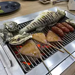 The "Sea World Composite Charcoal Grill" located in Zhuangwei, Yilan, specializes in the rare all-you-can-eat grilled fish. It has a variety of sea fish, as well as shrimp, crabs, oysters and other rich seafood. In addition, hot pot ingredients, meat slices, meat skewers, drinks and ice cream are all supplied unlimitedly. You will never get tired of eating!