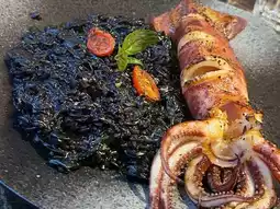 🦑 Grilled cuttlefish black sauce stew rice (limited): The whole deep-sea giant squid is grilled and served, with chewy meat + rich black sauce cuttlefish rice. The cuttlefish rice really makes us unable to stop, with a super rich seafood sweetness!