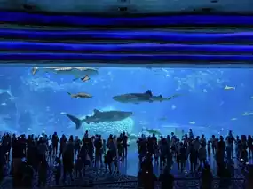 It has a glass viewing screen almost 40 meters long 😍 You can stand and see the whale shark 😌 Because the place is large, so crowded is not afraid 👍🏻👍🏻