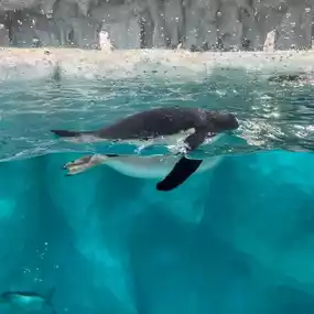 The baby penguins are much more relaxed. They gather together, standing, lying, swimming, or playing. They lead a very leisurely life. There are many types of penguins here. You can see lively Adélie penguins and emperor penguins that are as tall as five or six-year-old children. The penguin's belly is fat, full and shiny. It seems that its movements are slow and clumsy, but it moves agilely after entering the water, and it shuttles through the water like lightning. The beluga whale dives into the water very deep, which is visually shocking. With such a huge body, it can display flexible movements in the water.
