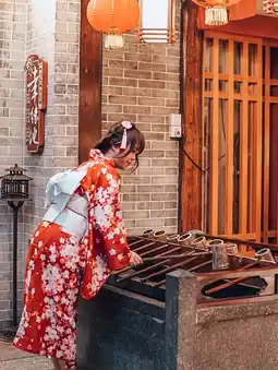 👘Wear a yukata to attend the temple fair buffet dinner. The whole atmosphere is very good, as if you are in Japan.