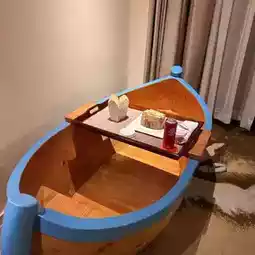 This time I booked a family terrace suite at Hengqin Bay Hotel from @trip.com_hk. The hotel room is quite large, with a king-size bed and a boat 🛌, a small boat dining table and a terrace overlooking the garden. The hotel room provides a set of dolphin washing utensils ~ thoughtful equipment 🐠